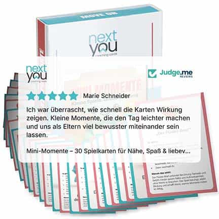 NextYou Kartensets decken verschiedene Lebensbereiche ab und begleiten Menschen in unterschiedlichen Situationen. Von Impulsen für werdende Eltern und Familienmomente über kreative Schreibideen für Autorinnen und Autoren bis hin zu Karten für Karriereplanung, Leadership und persönliche Entwicklung.